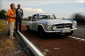 „Zimperlich darf man gegenüber seinem Altblech nicht sein, schließlich handelt es sich nicht um eine Kaffefahrt“, wie hier die Gleichmäßigkeitsfahrten in Deutschland gerne genannt werden. Dieses Zitat von Oenker Tuerker, dem Copiloten und Navigator der silbernen Pagode mit der Startnummer 316, trifft den Nagel auf den Kopf. Überhaupt, die drei Pagoden im Feld sind samt und sonders nur für diese Veranstaltung komplett neu aufgebaut worden. Die Versicherungswerte bewegen sich im deutlich sechsstelligen Bereich...